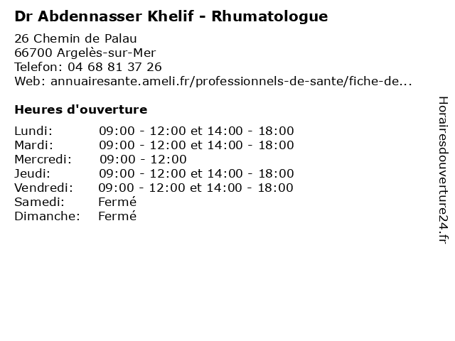 1 Dr Azzedine Arif - Rhumatologue (Distance: 0,00 km) 26 Chemin de Palau, 66700 Argelès-sur-Mer arif, azzedine, consultation, docteur, dr, dr., rhumatologie, rhumatologue, santé 2 Dr Sofian Bourdaim - Rhumatologue (Distance: 17,15 km) 4 Rue Arnaud de Villeneuve, 66330 Cabestany bourdaim, cabestany, centre, de, dr, locomoteur, rhumatologie, rhumatologue, rhume, sofian 3 Dr Sophie Cantogrel - Rhumatologue (Distance: 17,15 km) 4 Rue Arnaud de Villeneuve, 66330 Cabestany cabestany, cantogrel, centre, de, dr, locomoteur, rhumatologie, rhumatologue, rhume, sophie 4 Dr Jean-Luc Dajon - Rhumatologue (Distance: 17,15 km) 4 Rue Arnaud de Villeneuve, 66330 Cabestany cabestany, centre, dajon, de, dr, jean, locomoteur, luc, rhumatologie, rhumatologue, rhume 5 Dr Michel Trabis - Rhumatologue (Distance: 17,15 km) 4 Rue Arnaud de Villeneuve, 66330 Cabestany consultation, docteur, dr, michel, médecins, rendez, rhumatologie, rhumatologue, santé, sur, trabis, vous 6 Cabinet de Rhumatologie (secrétariat ) (Distance: 17,15 km) 4 Rue Arnaud de Villeneuve, 66330 Cabestany cabinet, consultation, de, docteur, médecins, rhumatologie, santé, secrétariat |