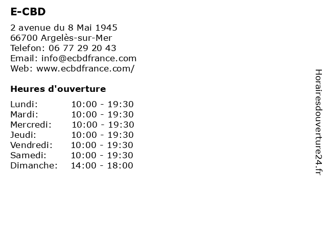 1 Green CBD Shop (Distance: 0,98 km) 22 allée des Palmiers, 66700 Argelès-sur-Mer canabis, cbd, chanvres, cosmétique, green, huiles, infusion, shop 2 CBD 66 (Distance: 19,14 km) 111 avenue Jean Mermoz, 66000 Perpignan 66, canabis, cbd, chanvres, cosmétique, huiles, infusion 3 Satyva (Distance: 1,46 km) 510 route d'Elne, 66700 Argelès-sur-Mer canabis, cbd, chanvres, cosmétique, huiles, infusion, satyva 4 1001 Herbes (Distance: 16,21 km) 1 rue île de France, 66140 Canet-en-Roussillon 1001, bien être, cbd, herbes, magasin, produit, santé 5 CB D'Eau (Distance: 17,02 km) 25C Boulevard de la Jetée, 66140 Canet-En-Roussillon cb, cbd, d'eau, infusion, plantes, résines, tisanes 6 Cbd.In - cbd Shop (Distance: 20,54 km) 29 Quai Sébastien Vauban, 66000 Perpignan canabis, cbd, cbd.in, chanvres, cosmétique, huiles, infusion, shop |