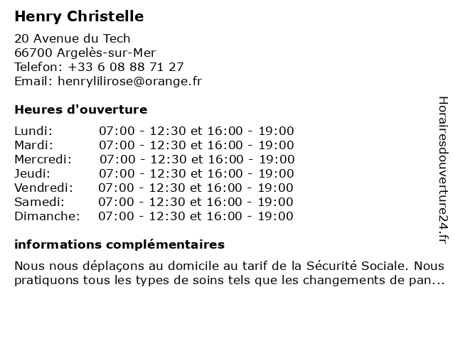 | Lundi | 07:00-12:30 et 16:00-19:00 |