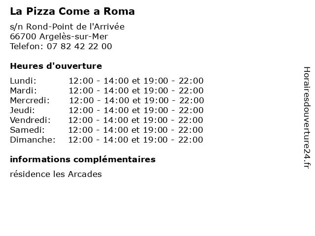 | Dimanche | 12:00-14:00 et 19:00-22:00 |