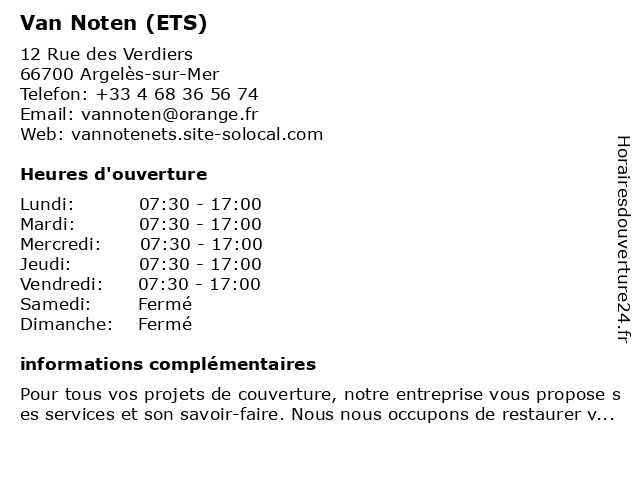 | Vendredi | 07:30-17:00 |