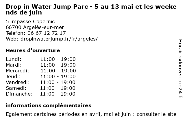 | Mercredi | 11:00-19:00 |