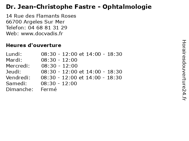 | Lundi | 08:30-12:00 et 14:00-18:30 |