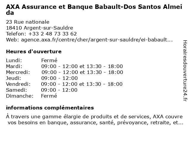 | Mardi | 09:00-12:00 et 13:30-18:00 |