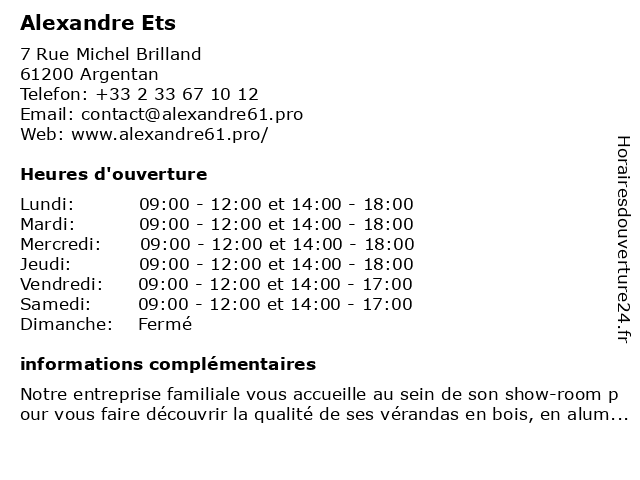 | Mercredi | 09:00-12:00 et 14:00-18:00 |