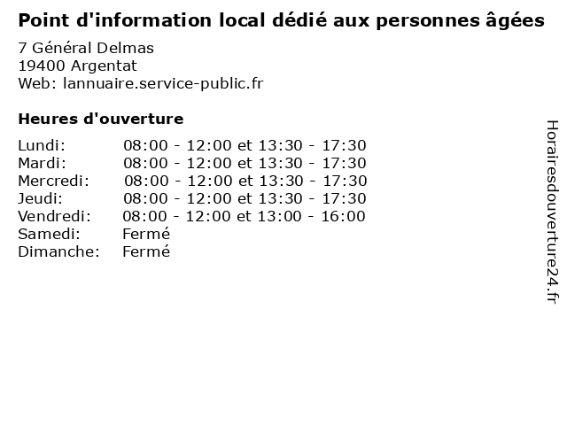 1 Point d'information local dédié aux personnes âgées (Distance: 9,19 km) - Le Bourg, 19430 Reygade agée, aide, aux, d'information, direction, dédié, information, local, personnes, point, public, soutien, âgées, état 2 Point d'information local dédié aux personnes âgées (Distance: 13,12 km) 11 rue de Bellevue, 19220 Saint-Privat administration, assoc, associations, aux, d'information, des, dédié, greffe, information, local, locale, mission, personnes, point, services, services publics, âgées 3 Point d'information local dédié aux personnes âgées (Distance: 14,83 km) n/a Rue Emile-Monbrial, 19120 Beaulieu-sur-Dordogne administration, assoc, associations, aux, d'information, des, dédié, greffe, information, local, locale, mission, personnes, point, services, services publics, âgées 4 Point d'Information Local Dédié aux Personnes âgées (Distance: 17,13 km) . Place du Marché, 19190 Beynat administration, aux, beynat, d'information, dédié, local, organismes, personnes, point, publics, services, âgées 5 Aux Momes (Distance: 0,20 km) 13 Avenue Pasteur, 19400 Argentat aux, chaussure, enfant, habits, mode, momes 6 HEBERGEM PERSONNES AGEES DEPENDANT ETS (Distance: 0,56 km) 14 Avenue Raymond Poincaré, 19400 Argentat-sur-Dordogne agees, dependant, ets, hebergem, personnes |