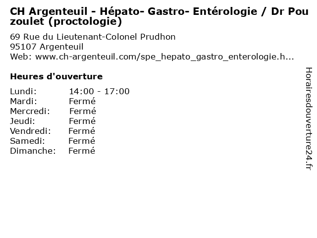 Termes de recherche pour CH Argenteuil - Hépato- Gastro- Entérologie / Dr Pouzoulet (proctologie):argenteuil, bureau, med, medecine, maladie, ch, traitement, médecin, consultation, dr, pratique, therapie, enterologie, gastro, proctologie, hépato, pouzoulet |
