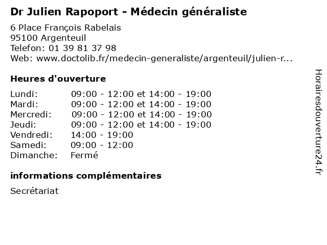 | Lundi | 09:00-12:00 et 14:00-19:00 |
