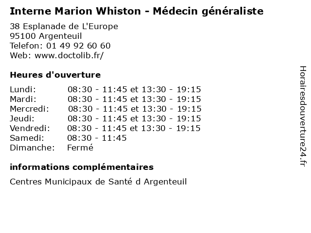| Mercredi | 08:30-11:45 et 13:30-19:15 |