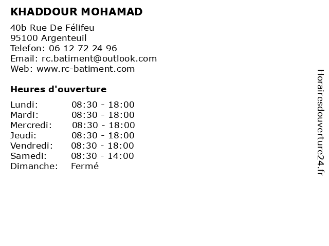 | Lundi | 08:30-18:00 |