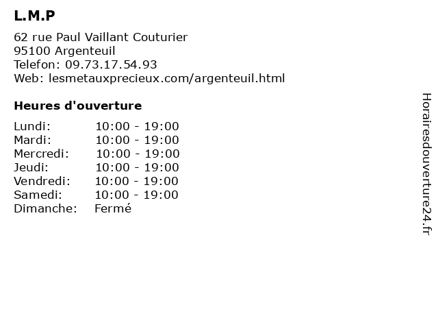Lundi | 10:00-19:00 |