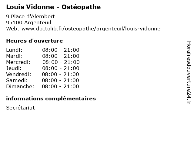 | Jeudi | 08:00-21:00 |
