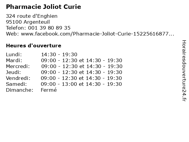 1 Pharmacie Joliot-Curie (Distance: 0,15 km) - Joliot-Curie, 95100 Argenteuil curie, joliot, la médecine, la pharmacie, la santé, les soins, pharmacie 2 Marché des Halles Joliot-Curie à Argenteuil (Distance: 0,15 km) - Joliot-Curie, 95100 Argenteuil argenteuil, curie, des, frutas, halles, hortalizas, joliot, marché, mercado, verduras 3 École élémentaire publique Pierre et Marie Curie (Distance: 7,43 km) . Rue des Deux Piliers, 95350 Saint-Brice-sous-Forêt cours, curie, et, marie, pierre, publique, servicios, école, élémentaire 4 École élémentaire publique Pierre et Marie Curie (Distance: 9,79 km) . Rue du Bon Air, 95460 Ezanville cours, curie, et, marie, pierre, publique, servicios, école, élémentaire 5 Musée Curie - Institut Curie (Distance: 13,24 km) 1 Rue Pierre et Marie Curie, 75005 Paris art, curie, establishments, history, institut, museums, musée 6 Institut Curie (Distance: 13,34 km) 26 Rue d'Ulm, 75248 Paris clinique, curie, hôpitaux, institut, santé, services |