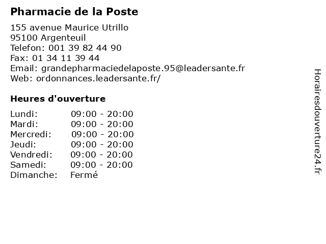 1 Pharmacie de la Poste (Distance: 9,22 km) 34 rue du Maréchal Foch, 78110 Le Vésinet de, herboristerie, la, médicaments, paramédical, parapharmacie, pharmacie, pharmacien, poste, santé, traitements 2 Pharmacie de la Poste (Distance: 12,00 km) 25 Avenue Jean Jaurès, 95330 Domont de, herboristerie, la, médicaments, paramédical, parapharmacie, pharmacie, pharmacien, poste, santé, traitements 3 Pharmacie de la Poste (Distance: 12,24 km) 60 rue de la Croix Nivert, 75015 Paris de, la, médicaments, pharmacie, poste, santé, service 4 Pharmacie de la Poste (Distance: 12,28 km) 44 rue Montmartre, 75002 Paris de, herboristerie, la, médicaments, paramédical, parapharmacie, pharmacie, pharmacien, poste, santé, traitements 5 Pharmacie de la Poste (Distance: 14,08 km) 79 avenue Jean Lolive, 93500 Pantin de, homéopathie, la, médicaments, orthopédie, parapharmacie, pharmacie, poste 6 Pharmacie de la Poste (Distance: 14,42 km) 81 Rue Jean Jaures, 95400 Arnouville de, herboristerie, la, médicaments, paramédical, parapharmacie, pharmacie, pharmacien, poste, santé, traitements |