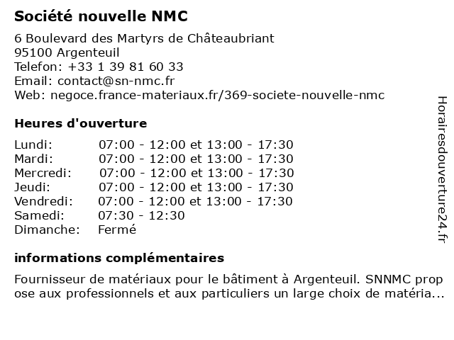 | Lundi | 07:00-12:00 et 13:00-17:30 |
