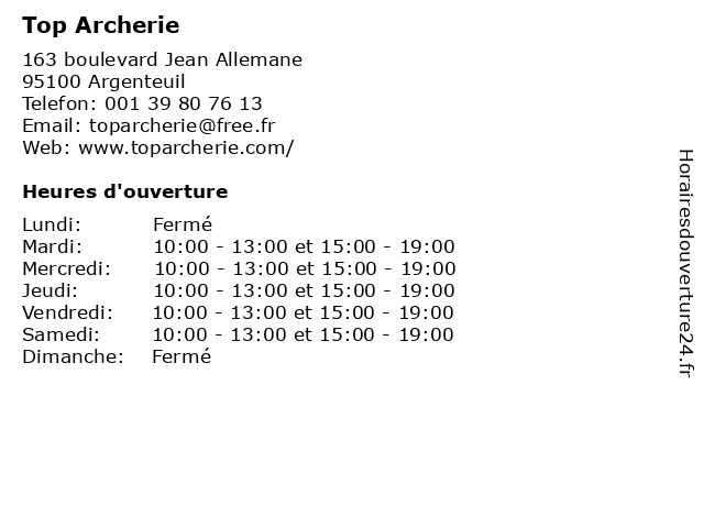 | Samedi | 10:00-13:00 et 15:00-19:00 |