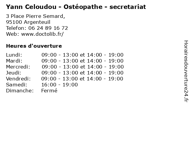 | Lundi | 09:00-13:00 et 14:00-19:00 |