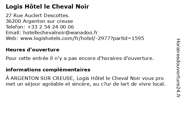 À ARGENTON SUR CREUSE, Logis Hôtel le Cheval Noir vous promet un séjour agréable et sincère, au c?ur de lart de vivre local.