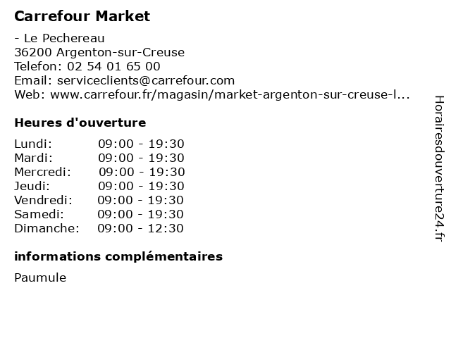 1 Carrefour Market (Distance: 9,31 km) - Rue Des Remparts, 36800 Saint Gaultier carrefour, market, matériel de jardin, meubles, électroménager, étagères 2 Carrefour Drive (Distance: 0,55 km) 9 Place De La Republique, 36200 Argenton-sur-Creuse alimentaire, carrefour, courses, drive, en ligne, magasin 3 Carrefour City (Distance: 0,60 km) 9 place de la République, 36200 Argenton sur Creuse carrefour, city, matériel de jardin, meubles, électroménager, étagères 4 Carrefour Station Service (Distance: 1,49 km) - Route de Gargilesse Paumule, 36200 Le Pêchereau carburant, carrefour, essences, gazole, service, services, station 5 Carrefour Location (Distance: 1,54 km) - Paumule Le Pechereau, 36200 Argenton-sur-Creuse agence, carrefour, location, utilitaires, véhicules 6 Carrefour Drive (Distance: 2,12 km) - Le Pechereau, 36200 Argenton-sur-Creuse alimentaire, carrefour, courses, drive, en ligne, magasin |