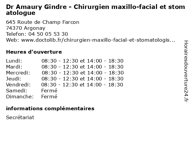 1 Dr Jacques Dechamboux - Chirurgien maxillo-facial et stomatologue (Distance: 0,00 km) 645 Route de Champ Farcon, 74370 Argonay chirurgien, dechamboux, dentaire, dr, et, facial, implantologie, jacques, maxillo, parodontologie, stomatologue 2 Dr Cyprien Ricou - Chirurgien maxillo-facial et stomatologue (Distance: 0,00 km) 645 Route de Champ Farcon, 74370 Argonay chirurgie, chirurgien, cyprien, dr, et, facial, general, maxillo, ricou, soins, stomatologue 3 Dr Hugo Compain - Stomatologue (Distance: 0,00 km) 645 Route de Champ Farcon, 74370 Argonay compain, dentaire, dr, hugo, implantologie, parodontologie, stomatologue 4 Dr Thérèse Gindre-Barrucand - Radiologue - secretariat (Distance: 1,11 km) - Allée de la Mandallaz, 74370 Metz-Tessy barrucand, dr, gindre, médecin, médecine, médical, pharmaceutique, radiologue, secretariat, thérèse, traitement 5 Dr Leslie Noyelles - Chirurgien maxillo-facial - stomatologue (Distance: 1,28 km) 1 avenue de l'hôpital, 74370 Epagny Metz-Tessy buccale, chirurgien, dr, facial, leslie, maxillo, maxilo, noyelles, stomatologue, visage 6 Dr Georges Bettega - Chirurgien maxillo-facial (Distance: 1,28 km) 1 avenue de l'hôpital, 74370 Epagny Metz-Tessy bettega, buccale, chirurgien, dr, facial, georges, maxillo, maxilo, visage |