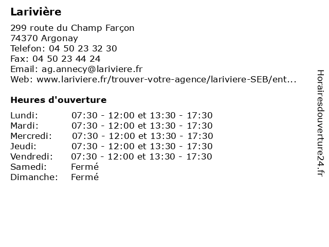 | Lundi | 07:30-12:00 et 13:30-17:30 |