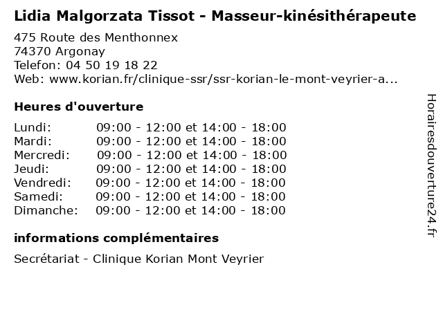 Lundi | 09:00-12:00 et 14:00-18:00 |