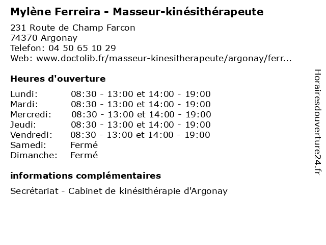 | Lundi | 08:30-13:00 et 14:00-19:00 |