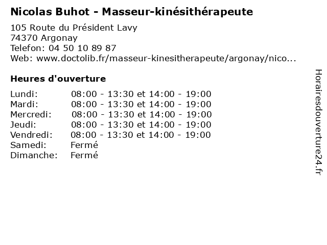 | Lundi | 08:00-13:30 et 14:00-19:00 |
