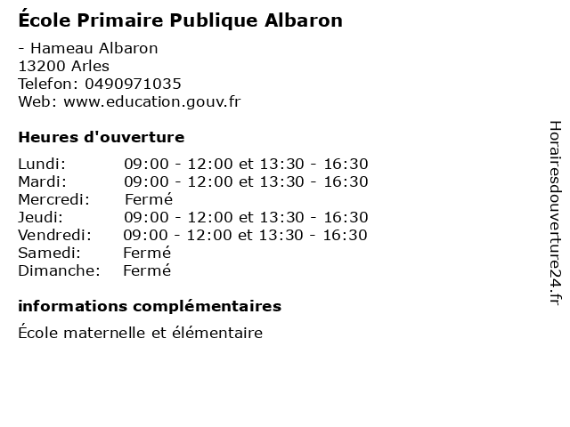 | Samedi | Fermé |