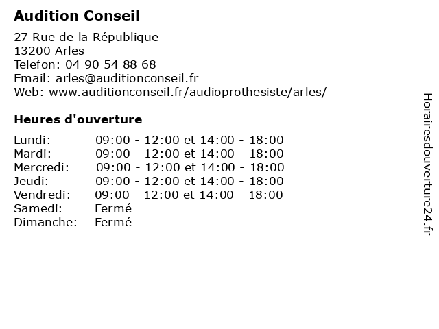 1 Audition Conseil (Distance: 14,33 km) 9-11 Cours Aristide Briand, 13150 Tarascon aide auditive, audition, conseil, santé, spécialiste 2 Conseil de Prud'Hommes (Distance: 0,10 km) 41 Rue de la République, 13200 Arles administration, assoc, conseil, de, prud'hommes, services, services publics 3 Ecouter Voir / Audioprothésiste Audition Mutualiste Arles (Distance: 0,17 km) 20 Place de la République, 13200 Arles arles, audioprothésiste, audition, ecouter, mutualiste, voir 4 Egolinéa Orientation Conseil (Distance: 0,27 km) 2 Rue Étienne Gauthier, 13200 Arles conseil, egolinéa, orientation 5 Achat Or Conseil - Atelier des Roues (Distance: 1,11 km) 3 rue Yvan Audouard, 13200 Arles achat, atelier, bijoux, comptoir, conseil, des, or, roues, vente 6 Audioprothésiste Krys Audition (Distance: 3,55 km) Centre Commercial Leclerc, 13200 Arles audiologie, audioprothésiste, audition, krys |