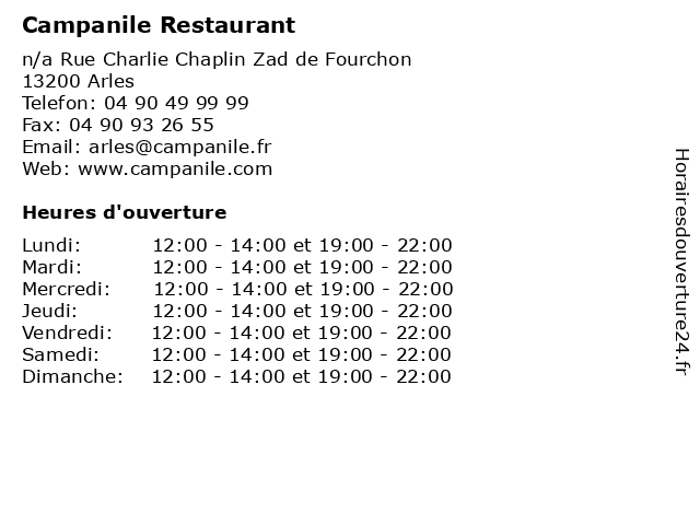 | Dimanche | 12:00-14:00 et 19:00-22:00 |