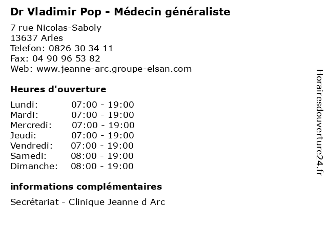 1 Librarie-Pop' Up et Cie (Distance: 28,50 km) 16 Rue de la République, 30900 Nimes bibliothèque, cie, et, libraire, librarie, livre, médiathèque, papeterie, pop', services, up 2 Dr Vladimir Totolidis - Radiologue (Distance: 29,34 km) 1 bis Avenue Jean Jaurès, 30000 Nîmes consultation, docteur, dr, med, médecin, radiologue, totolidis, traitement, vladimir 3 Hotel Pop' Hostel (Distance: 32,93 km) 17 Rue de la République, 84000 Avignon cafe, hostel, hotel, pop', restaurant, service 4 Pop Town (Distance: 33,03 km) 26 Rue De La Bonneterie, 84000 Avignon benoit, magasins, marchandises, occasion, pop, ranchain, town 5 Dr Marc Denis - Médecin généraliste (Distance: 0,00 km) 7 rue Nicolas-Saboly, 13637 Arles consultation, denis, docteur, dr, généraliste, marc, med, médecin, médecine, traitement 6 Dr Julien Gueguen - Médecin généraliste (Distance: 0,00 km) 7 rue Nicolas-Saboly, 13637 Arles consultation, docteur, dr, gueguen, généraliste, julien, med, médecin, médecine, traitement |