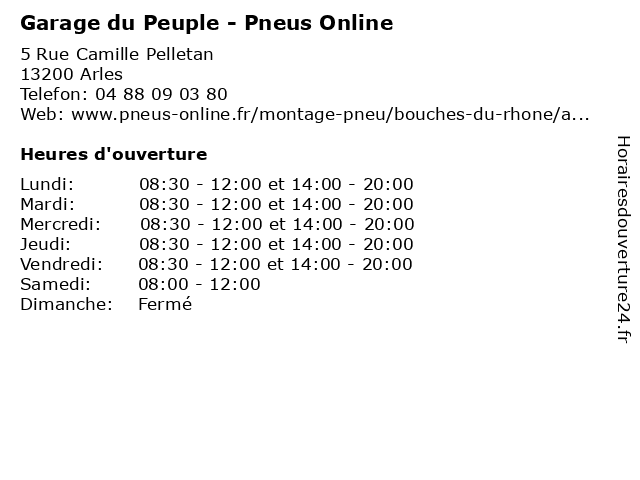 | Jeudi | 08:30-12:00 et 14:00-20:00 |
