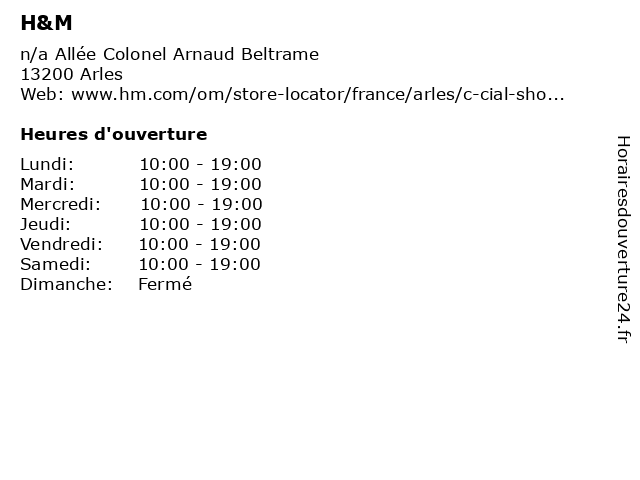 | Lundi | 10:00-19:00 |