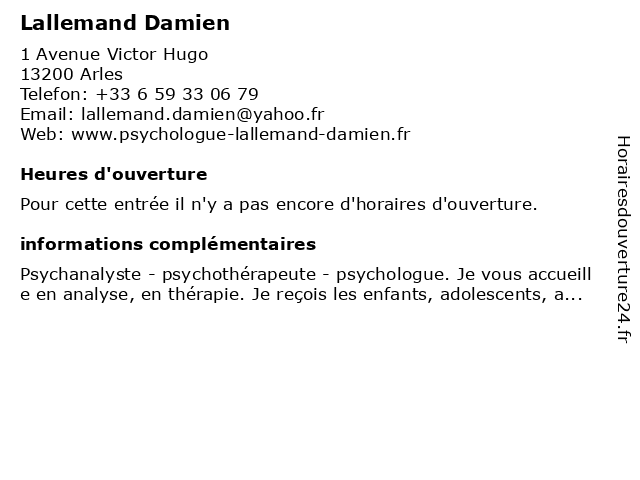 1 Dr Damien Girerd - Chirurgien orthopédiste (Distance: 0,62 km) 7 rue Nicolas-Saboly, 13637 Arles chirurgien, consultation, damien, docteur, dr, girerd, med, médecin, médecine, orthopediste, orthopédiste, traitement 2 Maître Damien Faupin - Avocat (Distance: 0,65 km) 14 rue Amédée Pichot, 13200 Arles avocat, avocate, avocats, civils, damien, droits, faupin, juridiques, maître 3 Damien Duprat (Distance: 1,14 km) 2 Rue pierre brossolette, 13200 ARLES agence immobilière, damien, duprat 4 Cottin Damien Frederic Denis (Distance: 33,80 km) Domaine Des Bellons, 13800 Istres cottin, damien, denis, frederic, restaurants 5 Buscail Florent Damien (Distance: 45,61 km) 26 Quai General Leclerc, 13500 Martigues buscail, damien, florent, restaurants 6 Dr Damien Dias - Angiologue (Distance: 45,85 km) 1 Place du 8 Mai 1945, 13500 Martigues angiologue, cabinet, damien, dias, diias, dr, medical, secretariat, traitements, vasculaires |