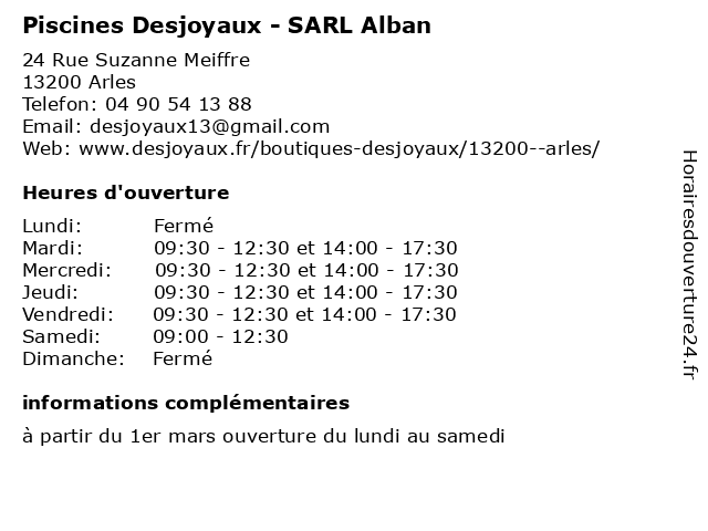 | Mardi | 09:30-12:30 et 14:00-17:30 |
