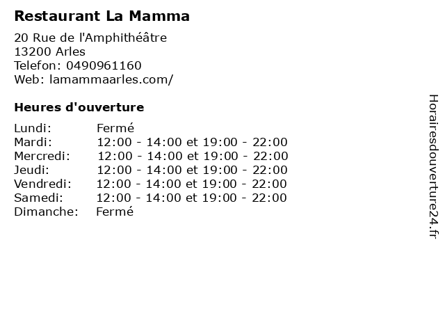 | Mardi | 12:00-14:00 et 19:00-22:00 |