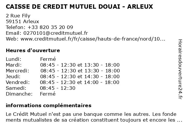 Termes de recherche pour CAISSE DE CREDIT MUTUEL DOUAI - ARLEUX:de, douai, crédit, mutuel, caisse, arleux |