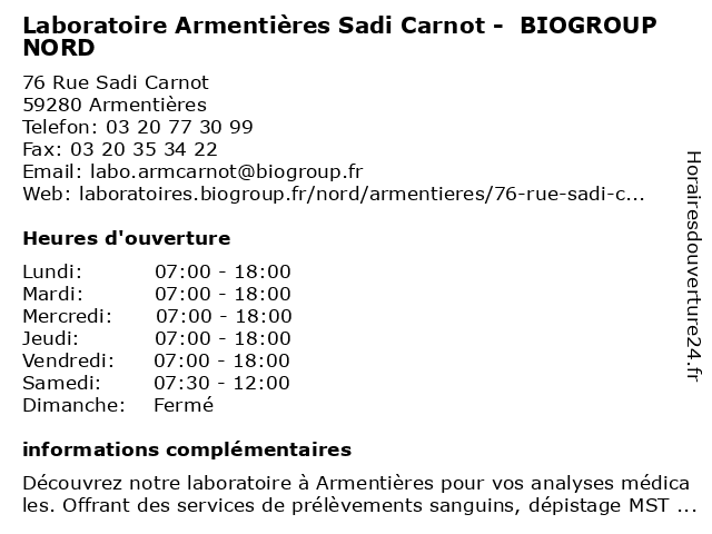 Termes de recherche pour Laboratoire Armentières Sadi Carnot - BIOGROUP NORD:armentieres, laboratoire, nord, carnot, sadi, biogroup, dépistages, laboratoire de diagnostic |