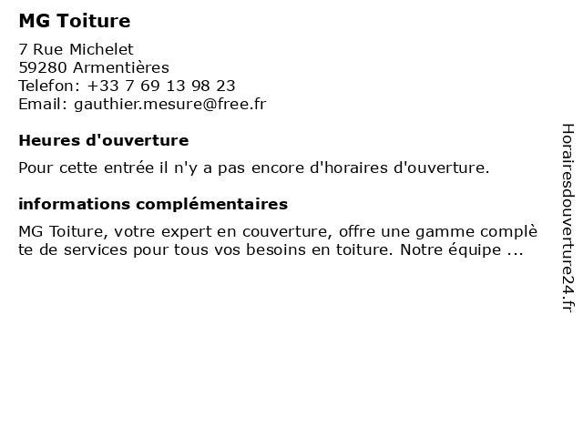 1 CMT Toiture (Distance: 10,49 km) 7 Rue Victor Hugo, 59160 Lille bardage, bois, c.m.t., charpente, cmt, construction métallique, couverture, rénovation, toiture 3 Nord Toiture (Distance: 13,19 km) 3 Rue Maracci, 59000 Lille bardage, bois, charpente, construction métallique, couverture, nord, rénovation, toiture 4 Green Acres (Mg Immobilier) (Distance: 13,56 km) 80 Boulevard de la Liberté, 59800 Lille acres, apartment rentals, green, home sales, immobilier, mg, real estate 5 Green Acres (Mg Real State) (Distance: 14,55 km) 67 Rue De Luxembourg, 59000 Lille acres, apartment rentals, green, home sales, mg, real, real estate, state 6 Couvr'Expert Toiture (Distance: 17,24 km) 10 Rue du Général de Gaulle, 59496 Salomé couvr'expert, toiture |