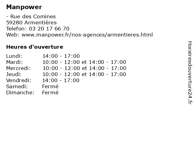 2 Manpower (Distance: 15,01 km) 839 Avenue de la République, 59700 Marcq en Baroeul agence, d'intérim, manpower 4 Agence d'Intérim Manpower Armentieres (Distance: 0,08 km) Rue de Comines, 59280 Armentieres agence, agence de recrutement, agence intérim, agence pour l'emploi, armentieres, cabinet de recrutement, cdi, d'intérim, intérim, manpower, recrutement 5 Agence d'Intérim Manpower Lille Tertiaire (Distance: 14,09 km) 55 Boulevard Carnot, 59000 Lille agence, agence de recrutement, agence intérim, agence pour l'emploi, cabinet de recrutement, cdi, d'intérim, intérim, lille, manpower, recrutement, tertiaire 6 Cabinet de Recrutement Manpower de Lille (Distance: 14,42 km) 6 Rue Saint-Sauveur, 59800 Lille agence de recrutement, agence pour l'emploi, cabinet, cabinet de recrutement, cdi, de, lille, manpower, recrutement  |