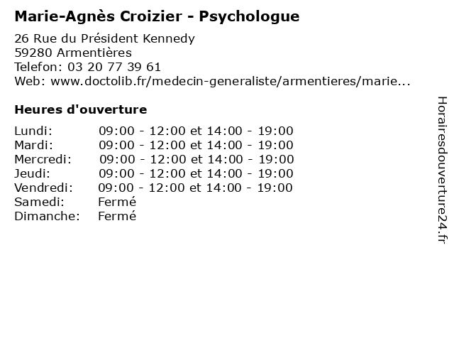 | Mardi | 09:00-12:00 et 14:00-19:00 |