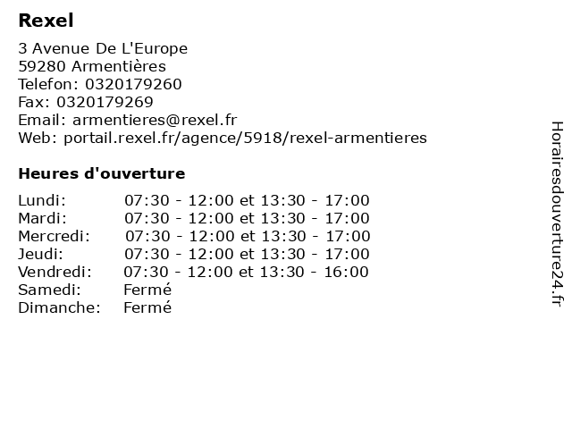 1 Rexel (Distance: 13,90 km) 180 Rue de Bondues, 59118 Wambrechies bricolage, magasin, outils, portails, rexel, services 4 Rexel (Distance: 17,86 km) 58 Avenue Léon Blum, 59370 Mons-en-Barœul bricolage, magasin, outils, portails, rexel, services 5 Rexel (Distance: 18,93 km) 14 Rue Du HT De La Cruppe, 59650 Villeneuve D'Ascq bricolage, loisirs, rexel, services 6 |
