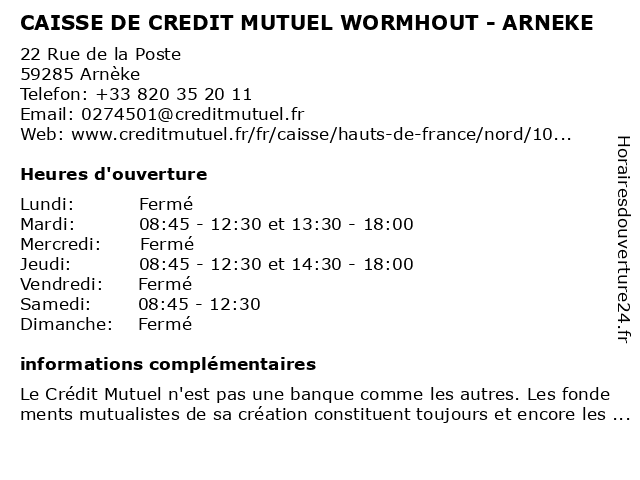 Termes de recherche pour CAISSE DE CREDIT MUTUEL WORMHOUT - ARNEKE:de, wormhout, crédit, mutuel, caisse, arnèke |
