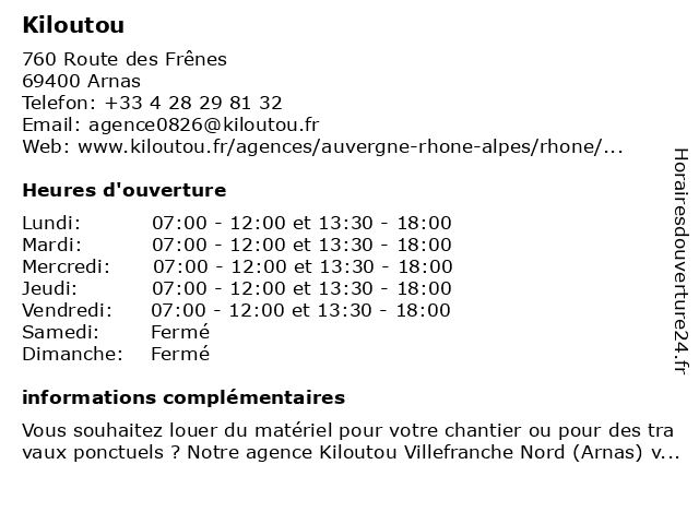 | Lundi | 07:00-12:00 et 13:30-18:00 |