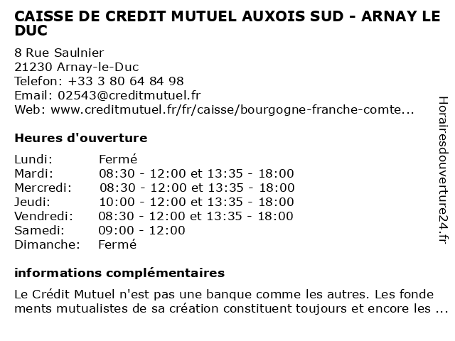 Termes de recherche pour CAISSE DE CREDIT MUTUEL AUXOIS SUD - ARNAY LE DUC:le, de, duc, crédit, sud, mutuel, caisse, arnay, auxois |