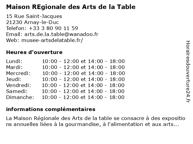 Termes de recherche pour Maison REgionale des Arts de la Table:la, de, des, maison, arts, table, regionale |