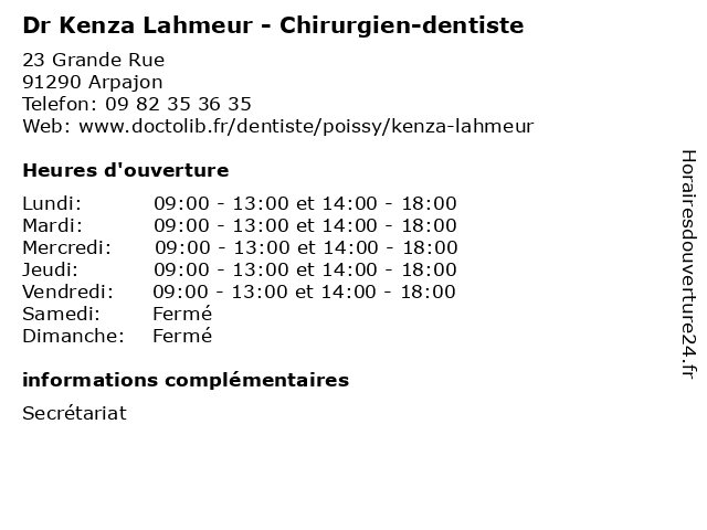 | Lundi | 09:00-13:00 et 14:00-18:00 |