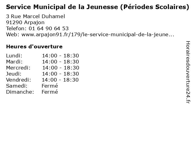 | Lundi | 14:00-18:30 |