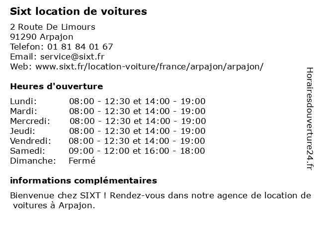 Lundi | 08:00-12:30 et 14:00-19:00 |